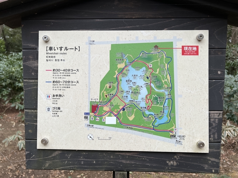 ご覧の通り、六義園は車いすでも周回出来ます。しかもコースは長短2つ。素晴らしいですね。